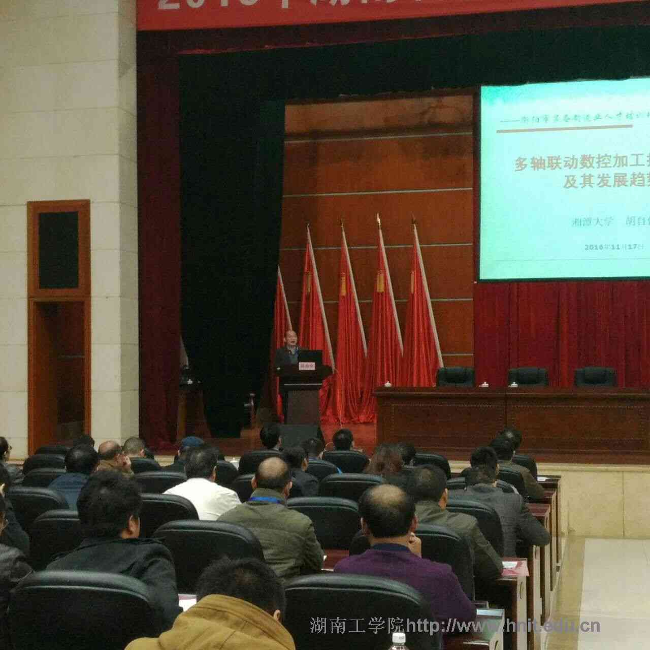 1117日,湘潭大学博士生导师胡自化教授应我院邀请在衡阳市委党校报告厅作了题为“多轴联动数控加工关键技术”的专题报告。学院刘吉兆院长、部分老师及14级部分学生共150人参加。